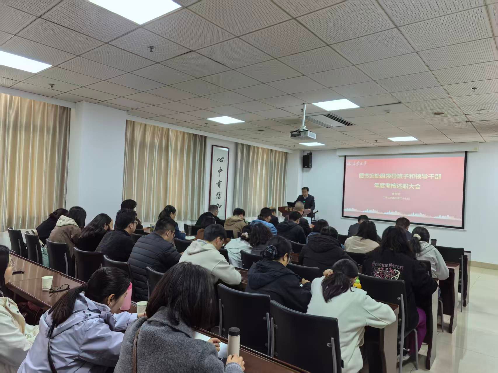 按照学校《关于开展2025年处级领导班子和领导干部年度考核的通知》精神,3月27日上午在北校区402研讨室召开图书馆处级领导班子和领导干部年度考核述职大会。图书馆全体馆员参加会议,会议由馆长樊建强主持。