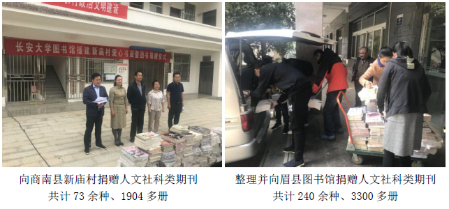贯彻落实陕西省高校图工委提出的高校图书馆与县级图书馆“结对子”工程,充分发挥我校图书馆人文社科类期刊资源的利用价值、文化价值和社会价值,传递高校对地方文化建设的支持度和关注度,推进社会文化发展,丰富县级图书馆的馆藏资源,加强高校图书馆与县级图书馆文化交流和互动合作,实现资源共享和共同发展,积极推动文化建设和全民阅读。